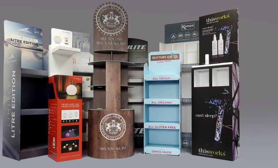 Comprehensive Retail & Promotional Display Solutions — Featuring Free-standing Units, POS Displays, Gondola Branding, Product Counters, Wall Murals, Vinyl Wraps, and Custom Branded Gifts.